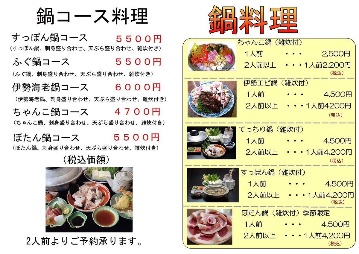 本よこ(造里)¥1500 活オコゼ(造里、唐揚げ、煮付)¥2000